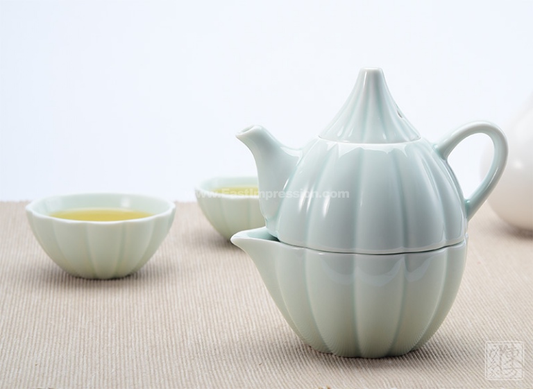 德化窑梅子青釉“巧云”简约版茶具