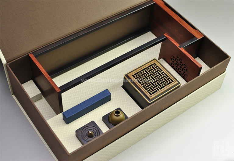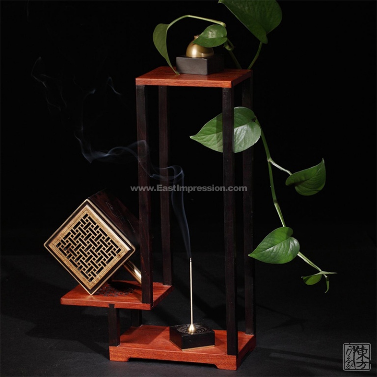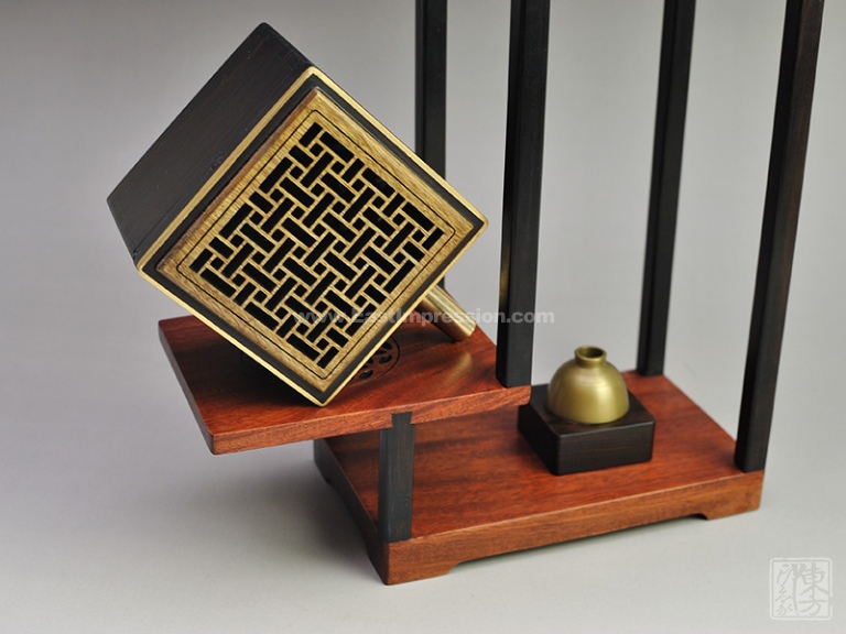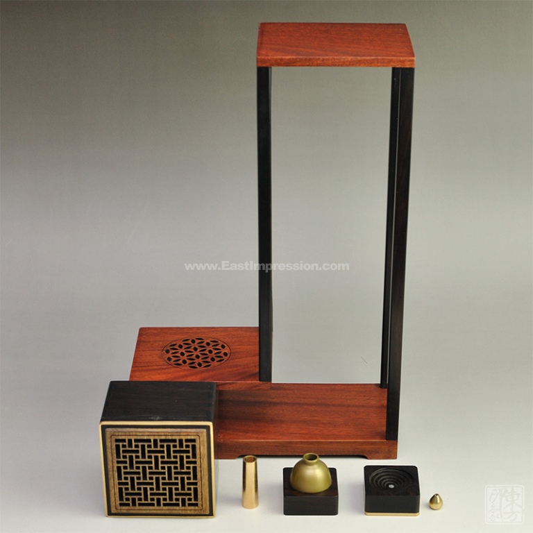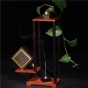 “自在风雅”艺术套装采用紫光檀、金丝楠、香花梨、黄铜等名贵材质结合榫卯、镂雕嵌等工艺,质本天然彰显名木之美与匠心手作之精。整体形制简洁,音响、花器、香器立体空间陈列,高低错落有致,登峰一取步步登高之意,二取闻香、听音、赏花三者合一可令人愉悦自在之心达登峰之境。坐雅室一方,有香、有花、有曲。一缕清烟,余音绕梁,花自绽放,尘嚣远去,便是心中桃源。