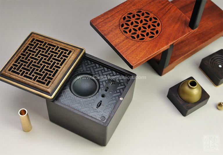 紫光檀镶嵌黄铜蓝牙音响套装:江南