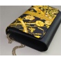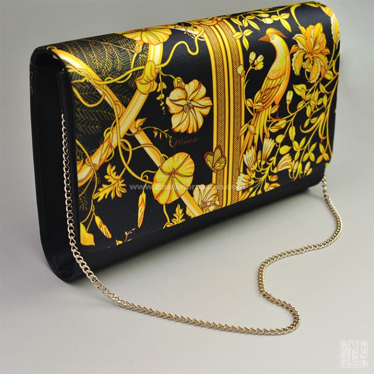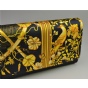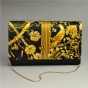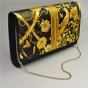 该款手包的主题图纹来源于被誉为“万园之园”的圆明园纹饰,以浓缩性的画面语言展现了中西文化的交融与碰撞。画面以圆明园建筑中的廊柱为中心,将代表中西方的牵牛花、鸢尾花优美呈现,其间藤曼婉转,枝繁叶茂,凤鸟驻足,蝴蝶翻飞,黑金色泽对比强烈,一派绚丽多姿、惊艳绝伦的华丽景象。