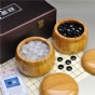 棋罐取材于天然的楠竹,其颜色、纹理、质地均有自然的美感与质感。仿红木礼盒造型方正大气,色泽古朴。配套棋盘为皮革制。