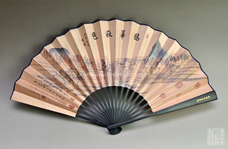 折扇出自中华老字号杭州名扇“王星记”,工艺考究,质感舒适。扇面采用杭州特产丝绸绢面印刷中国诗词山水画元素。扇骨采用上等仿乌木,抗压性和耐腐蚀性强。扇面与扇骨精心粘稠,扇边做工细致。