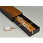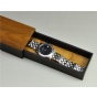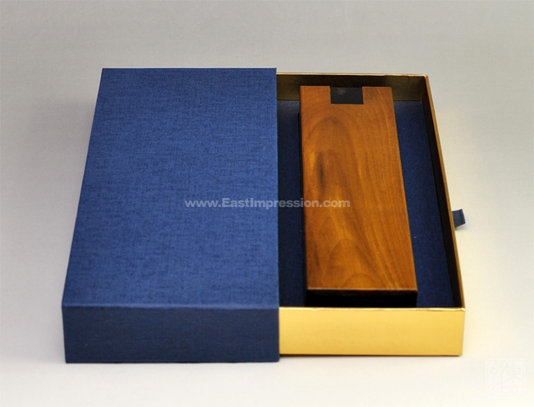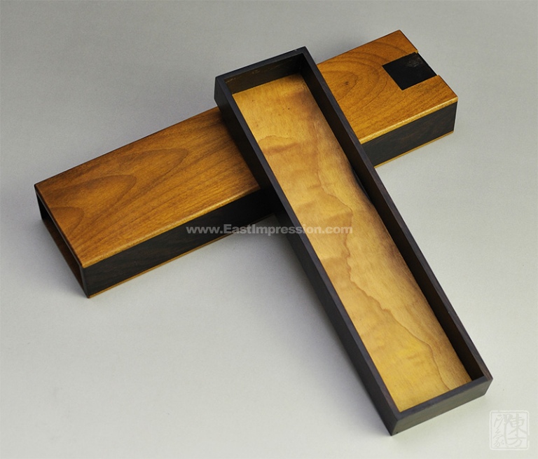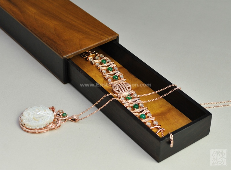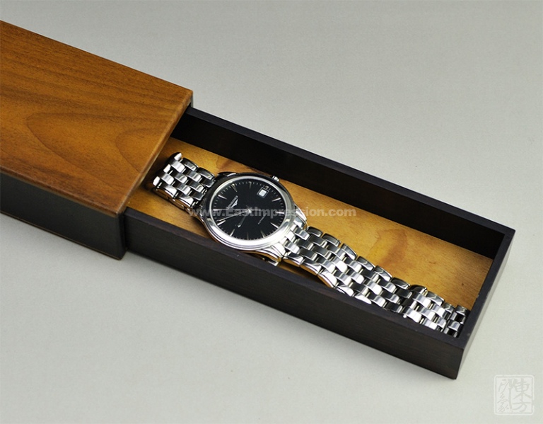 该置物盒采用国标红木紫光檀与楠木(缅甸)相结合。巧设机关,轻按盒面黑色按钮,盒屉应声而出;轻推,合屉并自动锁住,匠心独运。