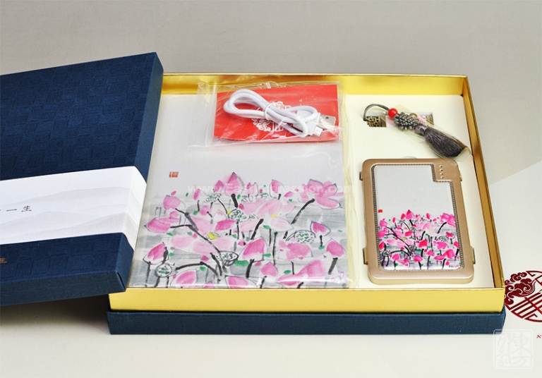 “青绿山水”商务三件套:真丝移动电源+真丝U盘+丝绸笔记本