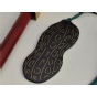 该款套装以专利设计U盘笔(专利号:201820291259X)与花生书签组合,科檀、紫光檀、黄铜、流苏在质感上形成了强烈对比。U盘笔在功能上合二为一,实用便利;仿真花生书签体现了精湛的铜木镶嵌的手工技艺,蕴涵着妙笔生花、硕果累累的吉祥寓意。