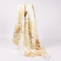 丝巾散发着珍珠般柔和的光泽,表面平整光洁,触感细腻丝滑。12姆米真丝素绉缎的筋骨性好,拥有自然垂坠感。丝巾图案呈浅棕色调,木兰花是一种早春开花的观赏性植物,满树的木兰花幽姿淑态,别具风情。伫立枝头的雀鸟是点睛之笔,神态专注,毛色鲜亮,为画面增添了灵动和意趣。