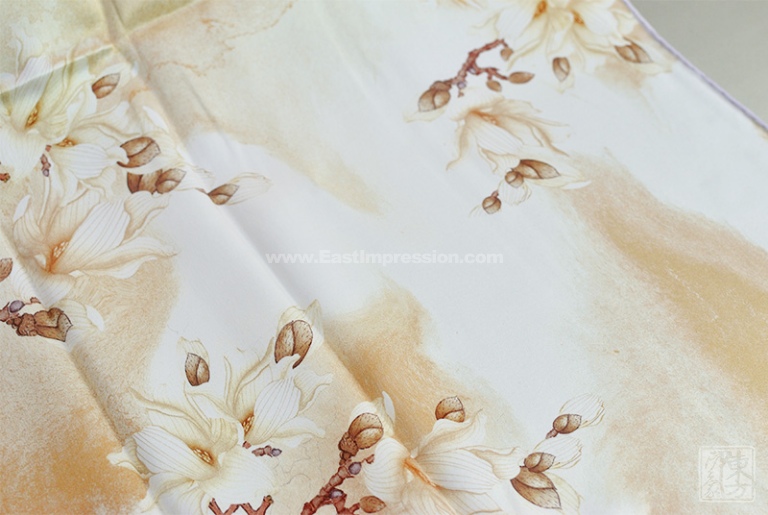 100%桑蚕丝/真丝素绉缎丝巾长巾:木兰花开