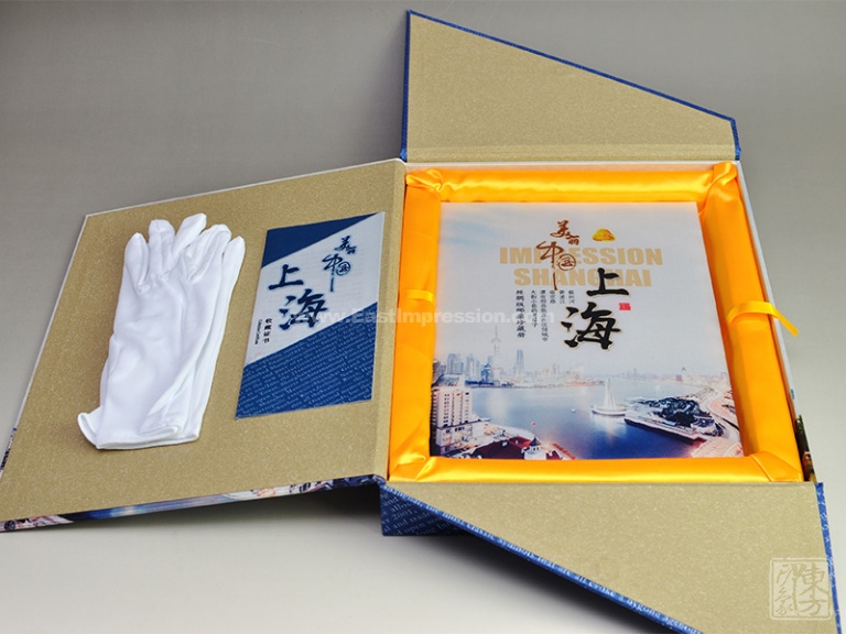 上海乃国际化大都市,以杭州丝绸为载体展现上海极具代表性的城市风貌、人文景观,真乃天作之合。书册质地精良、内容丰富、图文清晰,丝绸柔和华贵的光泽恣意流淌,融合邮票方寸之美,为书册增添了深厚的文化底蕴。礼盒图案以外滩这个一直以来被视为上海的标志性建筑和城市历史的象征为装饰,上海海纳百川、追求卓越的城市精神处处彰显。