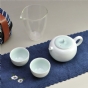 青白原为天地之色,它契合了中国文人对美的追求:含蓄、内敛、优雅、沉静。它静默成景,却又意境深远。壶、杯、罐均体现了“内青外白、青白结合”的特点,器型简洁干净,圆润中显敦厚之气,釉色明净而清新契合爱茶人的心境。