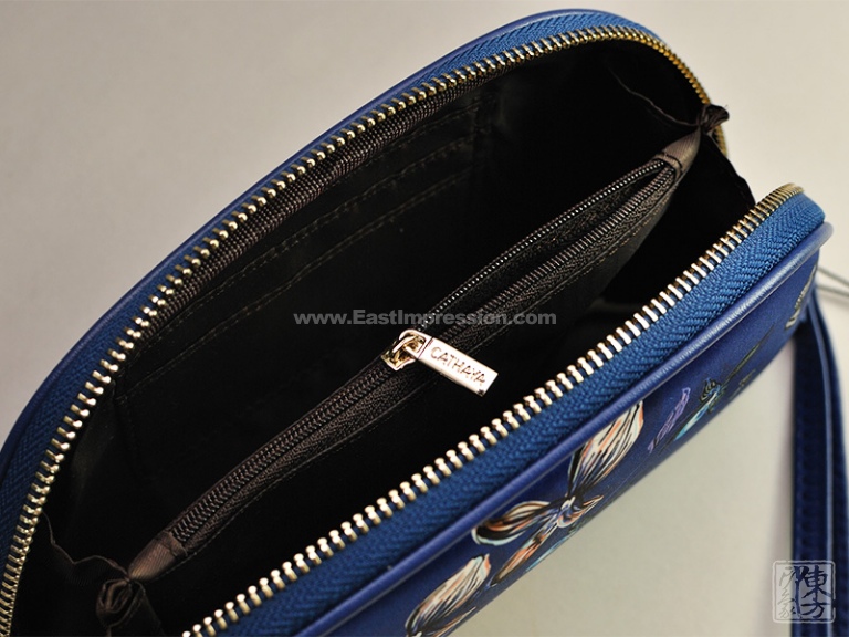 以5A级100%桑蚕丝为原料,正面面料为真丝素绉缎,里料为100%聚酯纤维,镶料为超纤,内设6个卡位、1个拉链袋、共计3层结构,配拎绳(可拿可拎),内部空间较为宽裕。