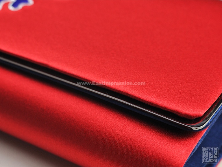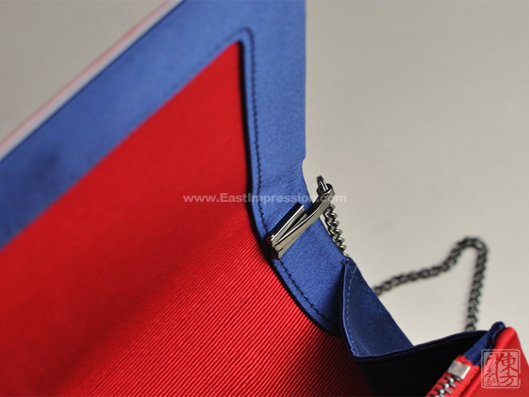 该款手包以5A级100%桑蚕丝素绉缎为面料,里料为100%粘纤,内部双层结构,容量较为宽裕。主题图案“芳园牡丹”采用大面积的刺绣和手工钉珠工艺精制而成。五金配件采用纯铜镀合金的材质,精细而厚实。手包运用纳米专利技术进行防水、防污、防油的三防处理,丝绸的华美质感和实用性能两者兼得。