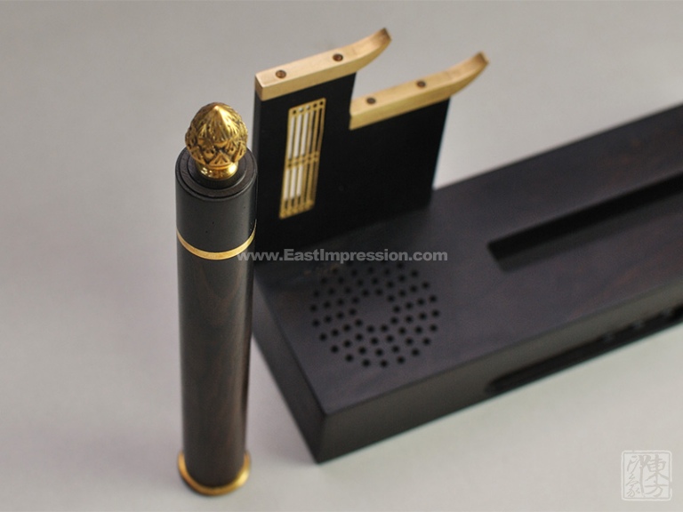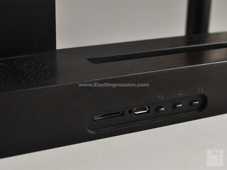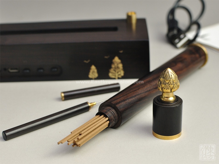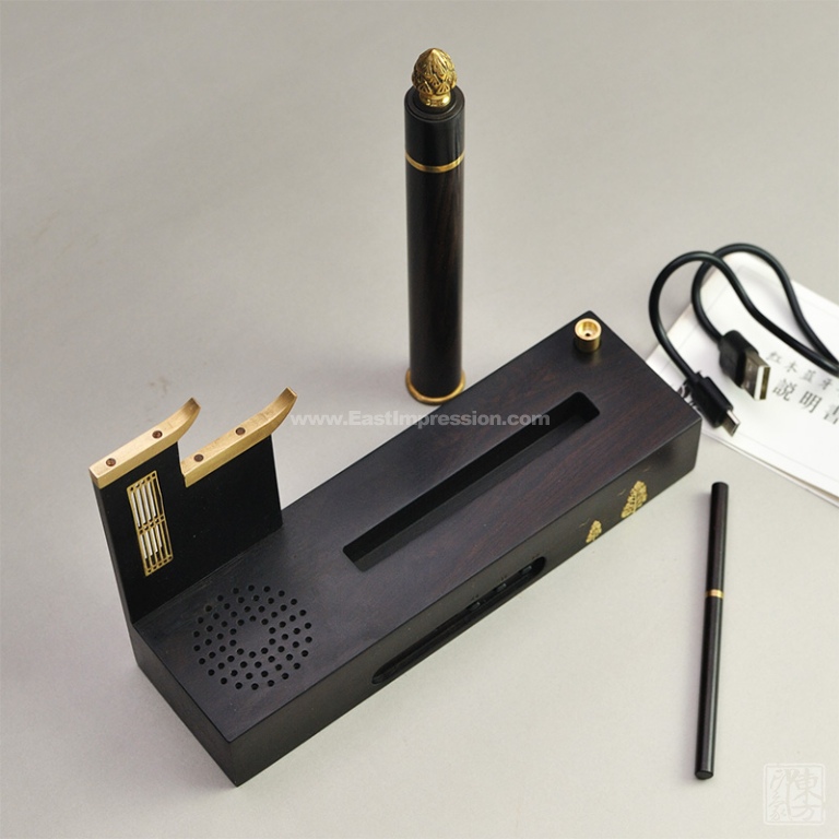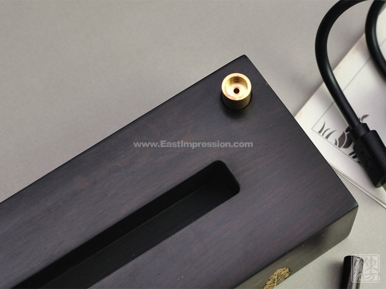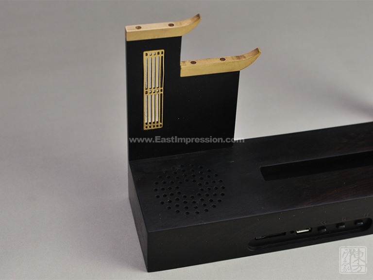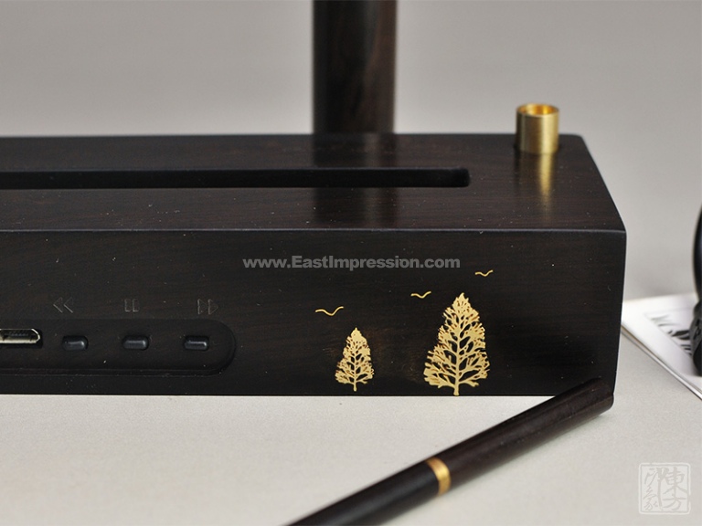 国标红木紫光檀深沉静穆。黄铜靓而不艳。两者结合,厚重与靓丽,朴拙与灵动,互为映衬。在功能设计上创新地将音响、多功能底座、香插巧妙结合,以“江南”为设计的核心思想,通过马头墙、窗棂等元素演绎,造型设计充满江南灵韵。赏乐闻香,雅乐如江南的气质婉约悠长,润泽心灵。