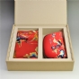 真丝手包和丝巾套装:一鹭莲升(橙红)