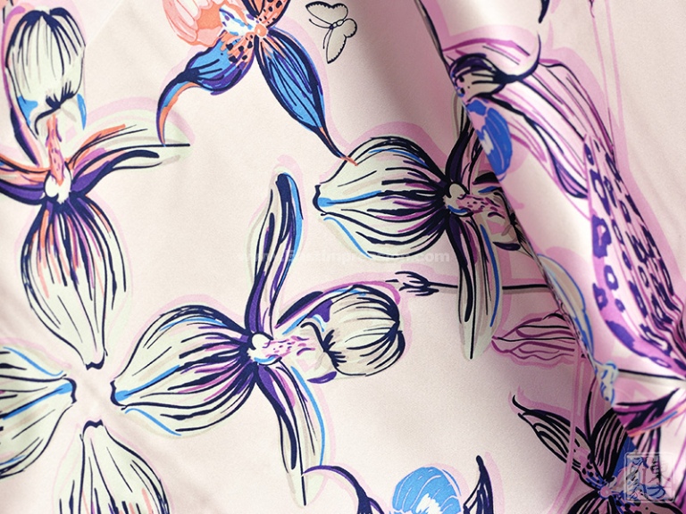 真丝面料是纯桑蚕白织丝织物,采用斜纹组织编制。根据织物平方米重量,分为薄型和中型。根据后加工不同分为染色、印花两种。它的质地柔软光滑,手感柔和、轻盈,花色丰富多彩,穿着凉爽舒适。主要用作夏令衬衫、睡衣、连衣裙面料及头巾等等。