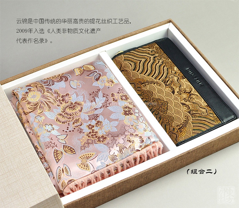 云锦围巾钱包套装:云锦真丝拉绒围巾(富贵连理)+云锦真皮钱包