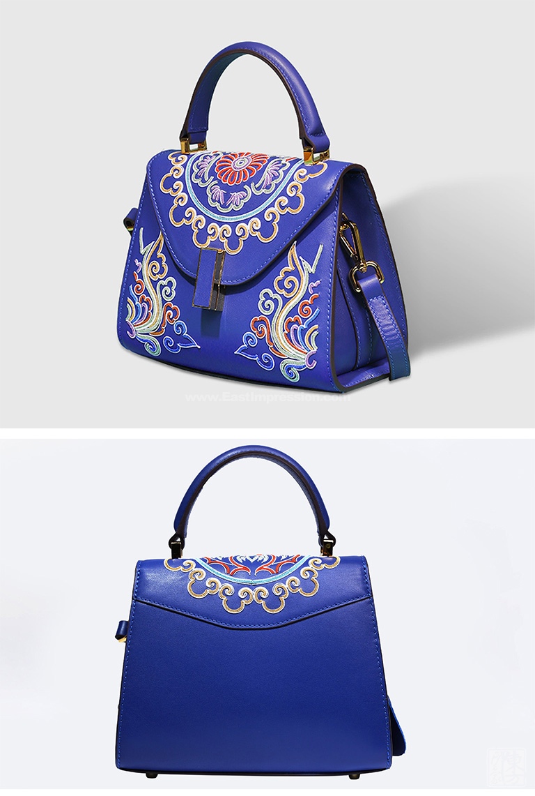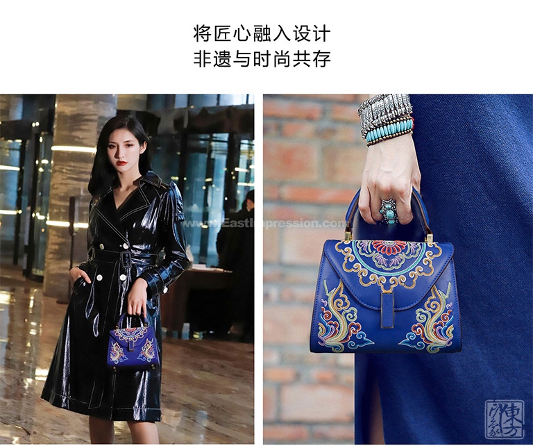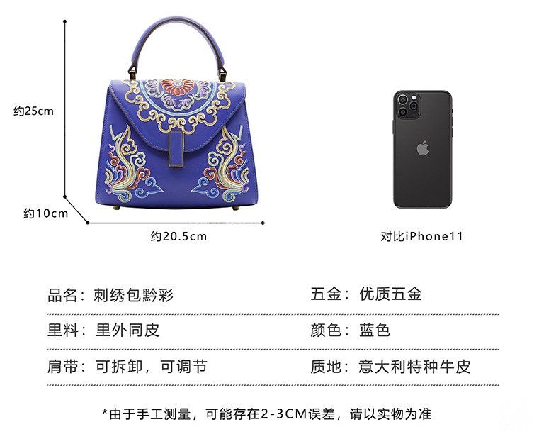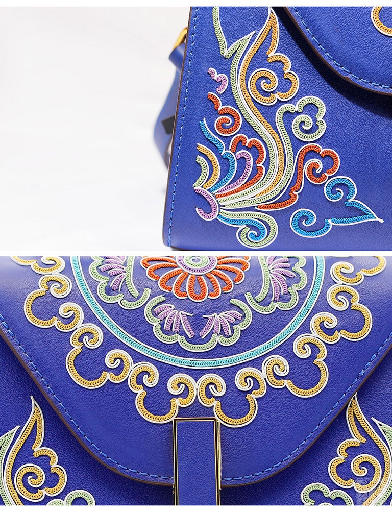 非遗“水族马尾绣”意大利特种牛皮女士手提包/单肩包:萧默