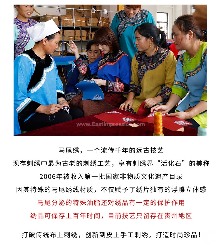 非遗“水族马尾绣”意大利特种牛皮女士手提包:黔彩