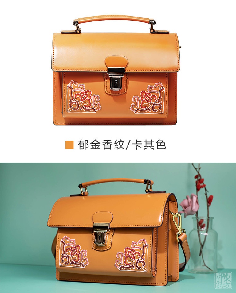 非遗“水族马尾绣”意大利特种牛皮女士手提包:时光系列