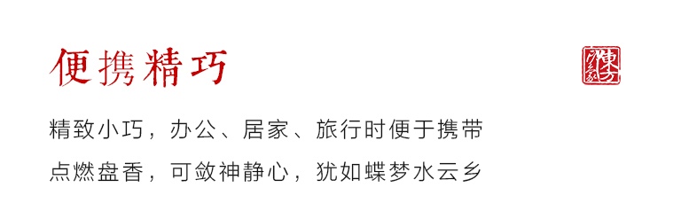 小巧精致 便于随身携带 香盒用料与做工都很高档和精致 很喜欢