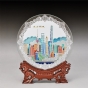 双面晶雕边透手工彩绘赏盘:东方明珠(Φ17.5cm)