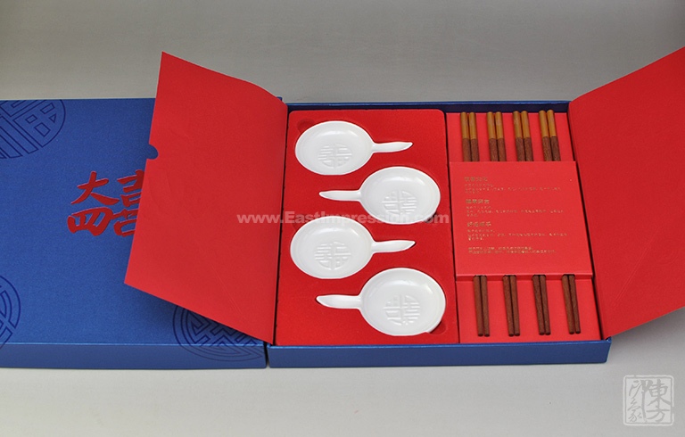 婚礼回礼送筷,是由“撒筷”的风俗而来。将筷子回赠给各位亲朋好友,寓意特别幸福吉祥,能把好运把喜气带给大家。抽出上上签,碟中沾沾喜,好福气分享出去,别人沾的越多,自家喜气越多。