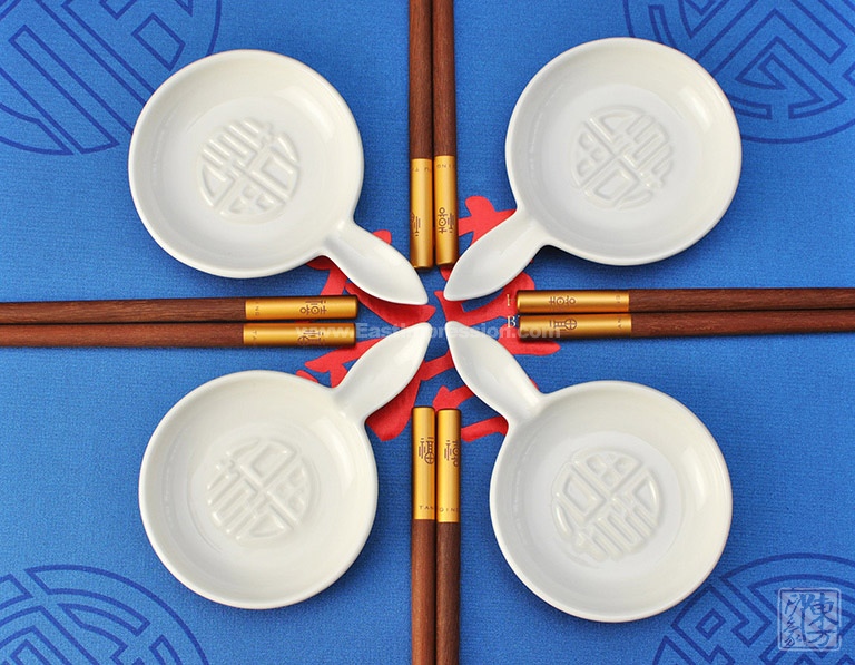 [团购]红檀木筷子+高白瓷蘸碟/筷架:大四喜