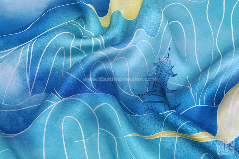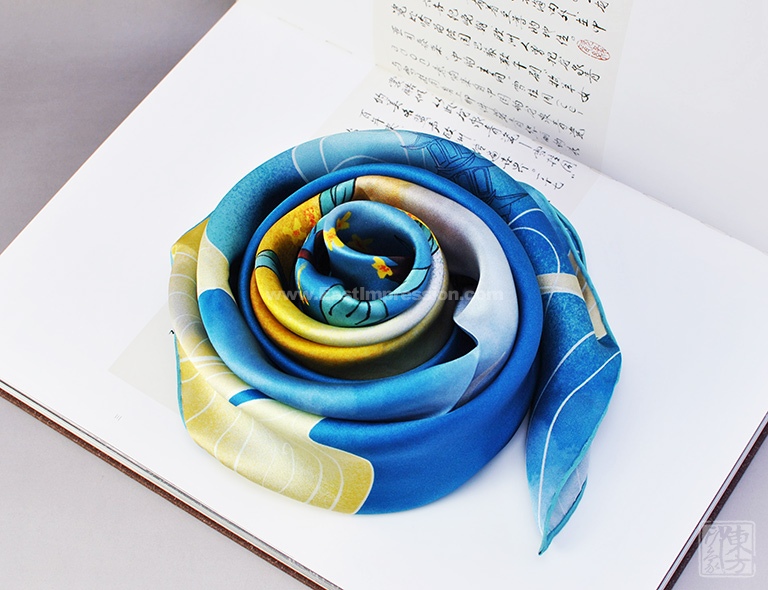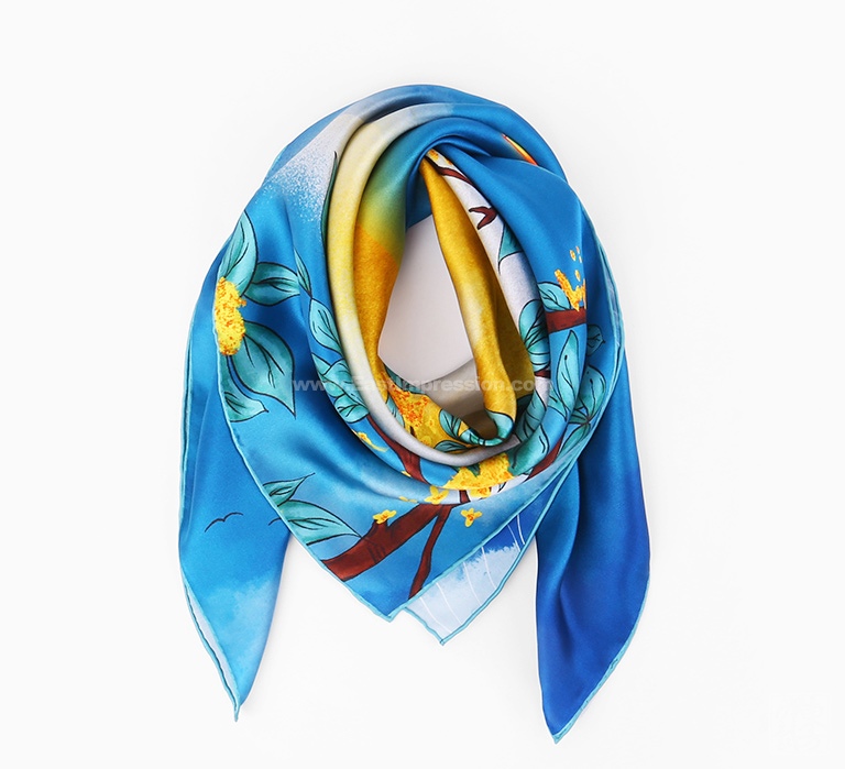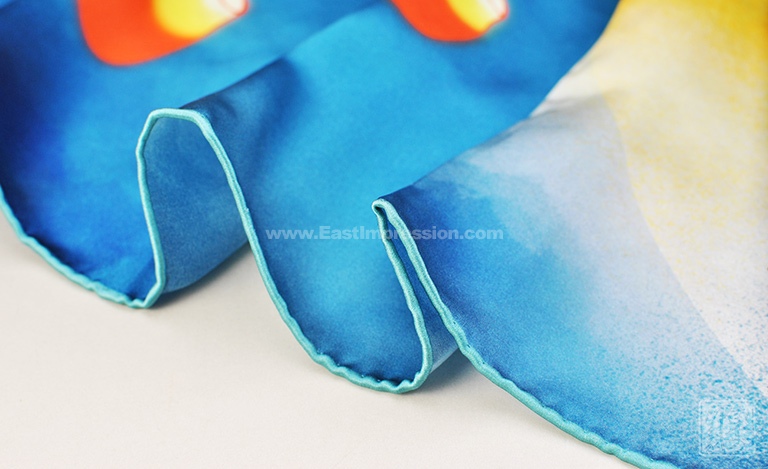 丝巾图案采用先进的数码喷印技术,使丝巾的色彩更丰富饱满,花型层次过渡自然柔美。密针手工卷边工艺,丝巾的对接缝更加美观,更为细腻精致。