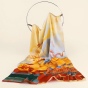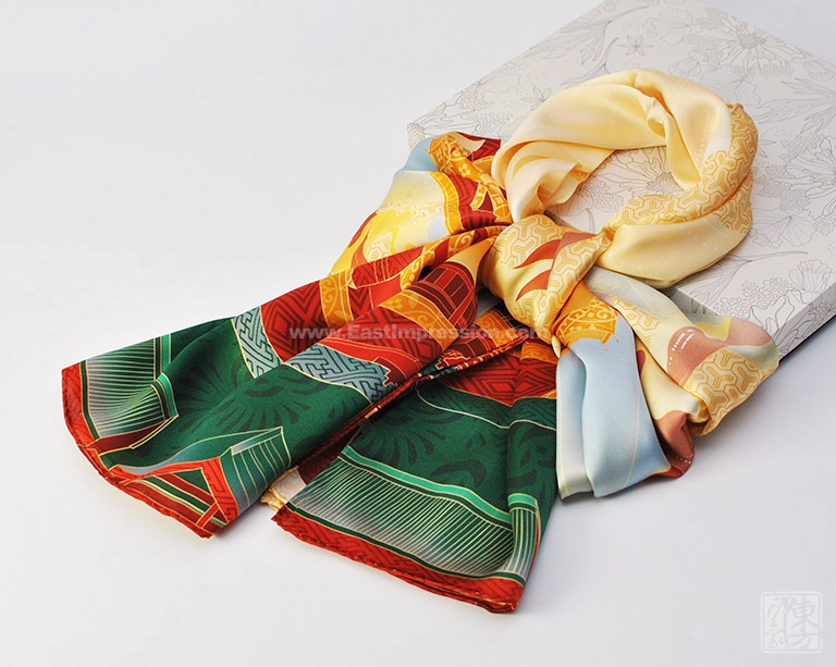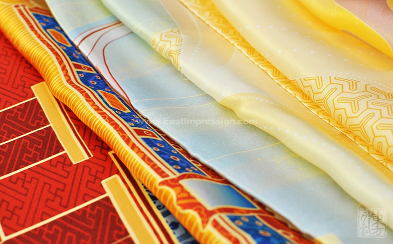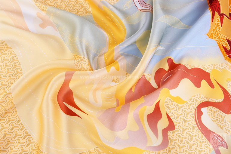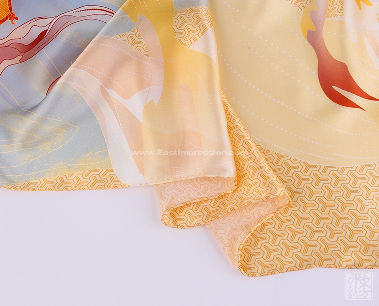 丝巾的图案采用先进的数码喷印技术,使丝巾的色彩更丰富饱满,花型层次过渡自然柔美。密针手工精卷边工艺,丝巾的对接缝更加美观,更为细腻精致。