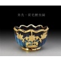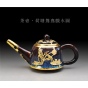 镀金锡镶工艺又称“金镶玉”,据北京故宫收藏及威海市志记载由威海新和成锡铺创制于清朝末年,是威海市独具特色的传统工艺。它是以纯锡为材料,经过冶炼、提纯、浇铸、錾刻等工艺,将纯锡制成带有图案的锡片,然后镶嵌在玉石、陶瓷、紫砂、琉璃等工艺品表面,再经过焊接、打磨、抛光、镀金等数十道手工工艺制作而成。