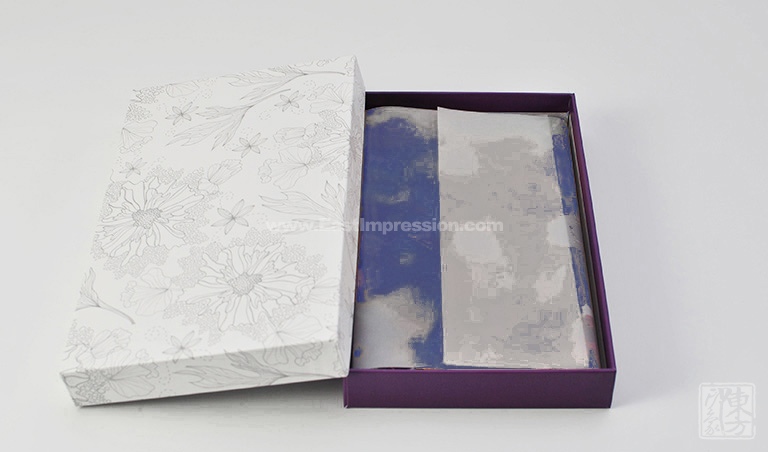 丝巾的图案采用先进的数码喷印技术,使丝巾的色彩更丰富饱满,花型层次过渡自然柔美。密针手工卷边工艺,丝巾的对接缝更加美观,更为细腻精致。