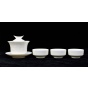 豆青釉阴雕玉脂瓷茶具套装:宾客盈门