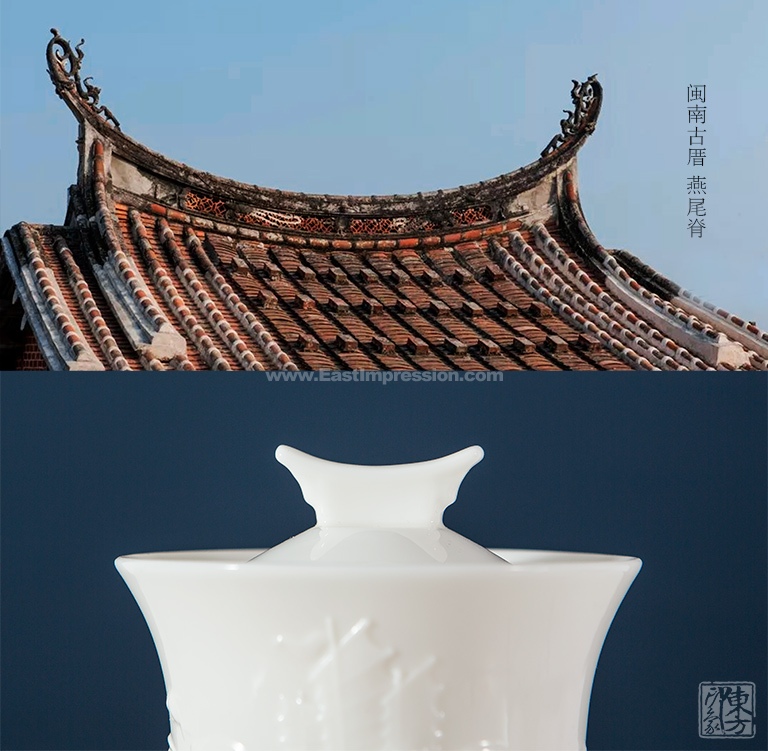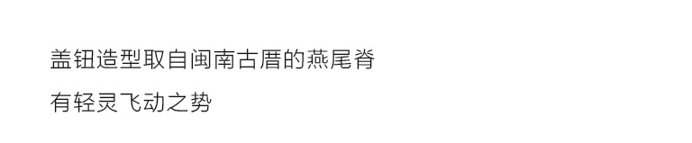 盖钮造型取自闽南古厝的燕尾脊,有轻灵飞动之势。