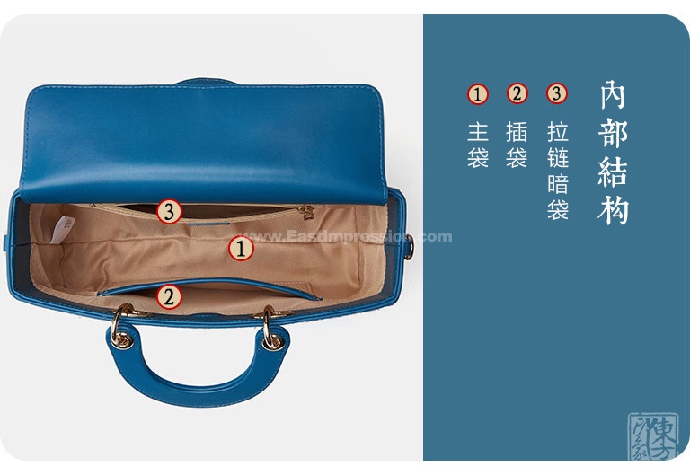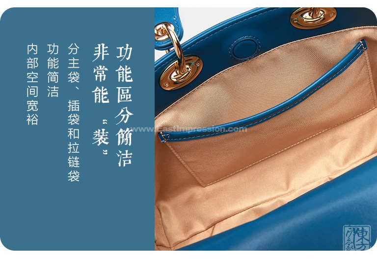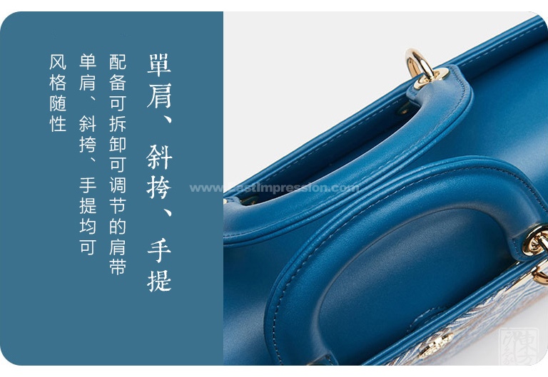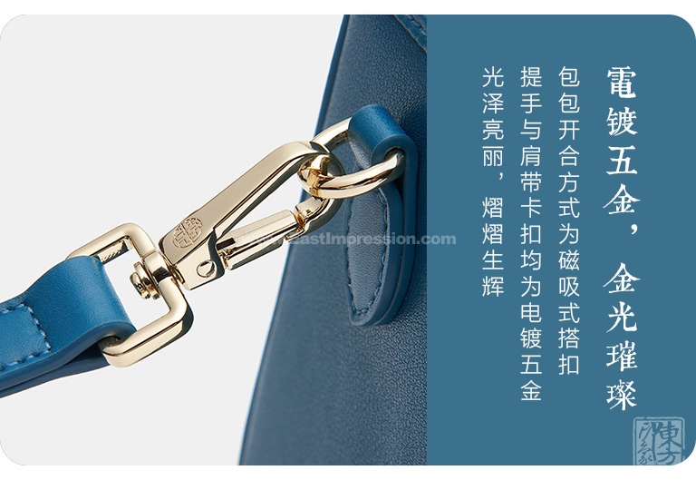 提手与肩带的卡扣均为电镀五金,光泽亮丽,熠熠生辉。