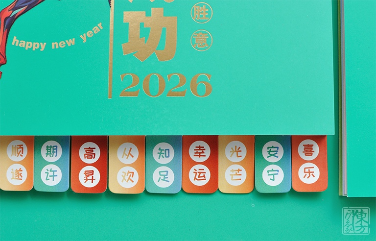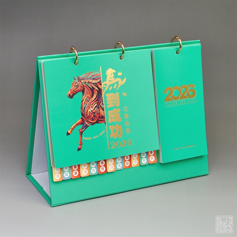 台历封面:350克白卡纸双面覆膜,印刷、烫金