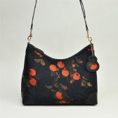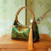 手工竹编缎面印花月牙包:竹枝翠鸟