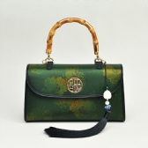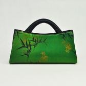 手工竹编缎面印花竹柄拎包:梅竹双清
