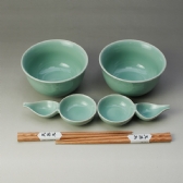 快客杯在功能、器型上的设计独特新颖,契合了现代人对泡茶、饮茶的需求。青瓷是中国著名传统瓷器的一种,瓷质细腻,线条明快流畅,色泽纯洁。该套茶具薄胎厚釉,釉色如竹叶青,釉面布满冰裂纹片,无意而自然,可谓天工造就。