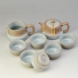 半陶釉万寿高脚杯茶壶套装:开片古陶(微瑕)