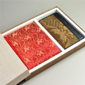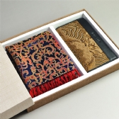 云锦是中国传统的华丽高贵的提花丝织工艺品,集历代织锦工艺艺术之大成,2009年已入选《人类非物质文化遗产代表作名录》。该款套装以云锦真丝拉绒围巾与云锦头层牛皮男士拉链款钱包组合而成,纹样繁复华美,风格和谐统一,体现了昔日皇家御用贡品雍容大气的格调。