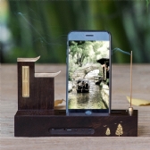 该款音响以酸枝木为箱体,紫光檀为底座,顶部黄铜镶边,集镂雕镶工艺于一体。内置可充电聚合物锂电池,支持蓝牙、TF卡(不含TF卡)两种播放模式。创新性地将音响与香插结合在一起,以“水滴”为创意设计要素,整机小巧便携,可置于案头,亦可随身携用。