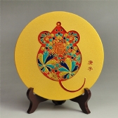 [团购]双面晶雕手工彩绘赏盘:福鼠叼金钱