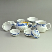 [团购]手绘青花釉陶国画茶壶套组