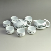 [团购]德化羊脂玉瓷茶具八件套:富春山居图