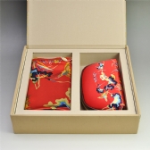 该款套装以真丝素绉缎手包和方巾为组合,均以5A级100%桑蚕丝为原料,采用台版印花、天然环保活性染料、手工卷边等优良工艺精制而成。以“一鹭莲升”为主题纹饰,融合明清四大名绣的传世蓝本,图案色彩丰富,情境欢欣美妙,寓意工作生活一路连升、和美顺达。橙红的主色调,演绎女性温暖而明朗的风采。