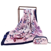 该款套装以真丝素绉缎手包和方巾为组合,均以5A级100%桑蚕丝为原料,采用台版印花、天然环保活性染料、手工卷边等优良工艺精制而成。以手绘风格的花卉图案装饰,花卉形态美妙多姿,配色绚丽多彩。女性如花般的柔美雅致与娇媚动人的魅力得以尽显。