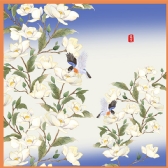 [团购]100%桑蚕丝真丝斜纹绸飘带丝巾(双层):梅雀争春