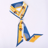 该飘带丝巾以12姆米真丝斜纹绸为面料,双层双面设计,运用“海洋蓝”、“阳光金”为主色调,以充满热带风情的椰果为主题形象,配色冷暖相间,塑造出阳光海岸令人心旷神怡的情境。时尚又吸睛的飘带丝巾造型百变,创意无限,美由“我”来定义。