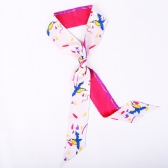 该飘带丝巾以12姆米真丝斜纹绸为面料,双层双面设计,运用珍珠白和玫红为主色调,以轻盈美丽、翩翩飞掠的翠鸟为主题形象,在一抹抹随性的五彩涂鸦中,娇媚动人的气息自然流露。时尚又吸睛的飘带丝巾造型百变,创意无限,美由“我”来定义。