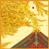 “又是一年霜降至,千年银杏叶泛黄。”该丝巾以14姆米真丝素绉缎为面料,图案采用先进的数码喷印技术,密针手工卷边工艺精制而成。画面撷取霜降节气,古宫殿飞檐斗拱旁的大片银杏闪耀着夺目的金黄,对角构图大面积呈现、重彩对比,遇见美好,惊艳时光。