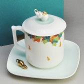 [团购]龙泉青瓷(弟窑•梅子青釉)茶杯/咖啡杯套装:葫芦兔
